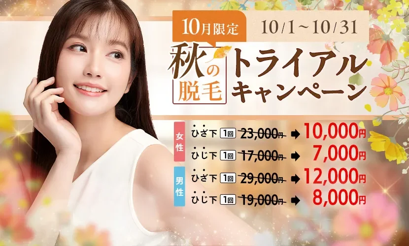2025年10月限定で、男女ともにひざ下・ひじ下の脱毛1回がお得に受けられるキャンペーンを実施中!
